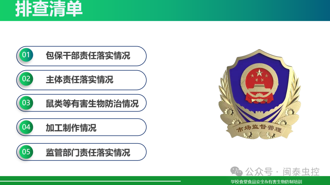 故而国务院食安办会同教育部、公安部、国家卫生健康委、市场监管总局在2023年12月13日发了一个有关《校园食品安全排查整治专项行动实施方案》通知,而涉及有害生物防制也是其中的一个环节。