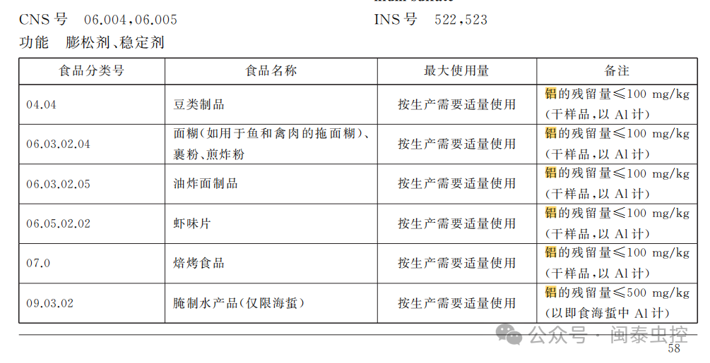 明矾,对铝的管理,《食品添加剂使用卫生标准》(gb 2760-2014) 也是有明确规定的。