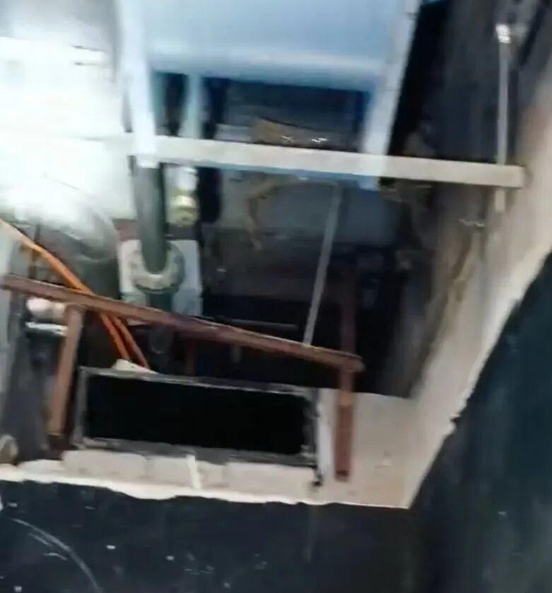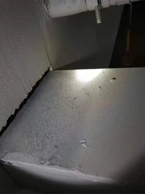 又比如,我们发现与邻家相通的吊顶是这样的,那么我们需要对整体缺失的墙体面进行修缮,重新砌墙垒高至顶端处置,已确保无空隙留存。